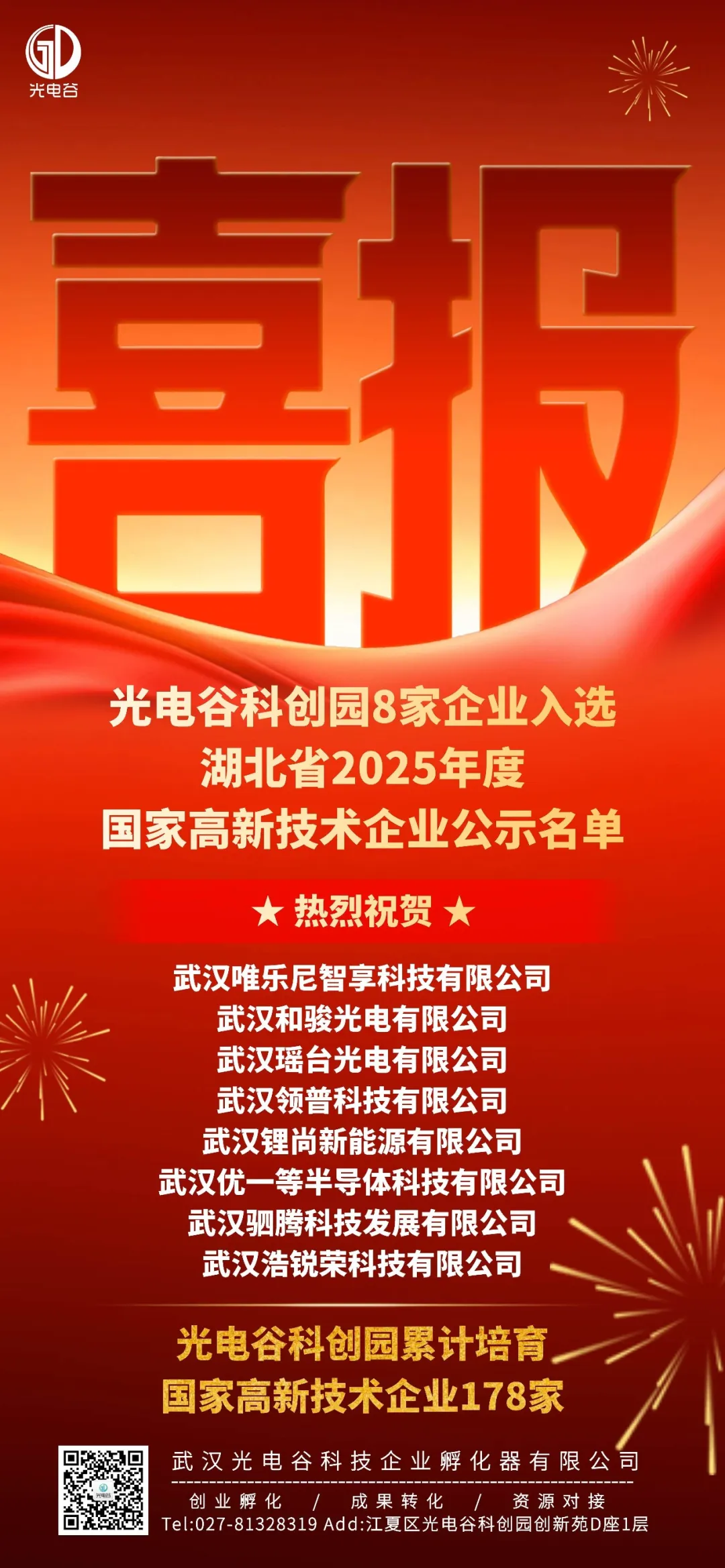 好消息!在湖北省2025年国家高新技术企业备案名单中,光电谷科创园8家企业成功上榜,高企培育再结硕果!