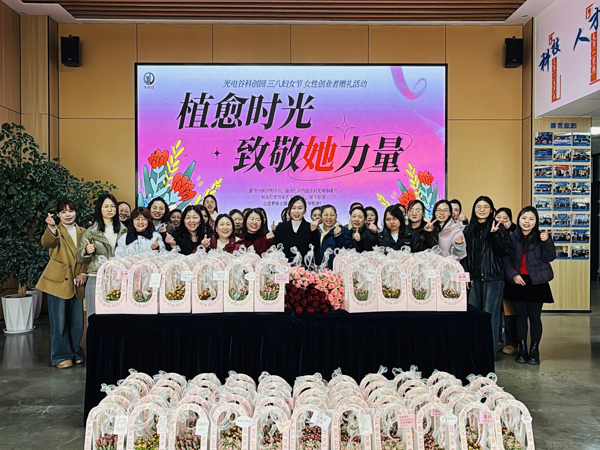 春风拂面,芳华绽放。为喜迎三八国际妇女节,致敬园区广大女性工作者,光电谷科创园精心举办“植愈时光,致敬她力量”主题赠礼活动,为园区女性创业者、财务及行政人员送上精致多肉小花篮,以一抹清新绿意,传递园区暖心关怀,致敬每一份巾帼力量。
